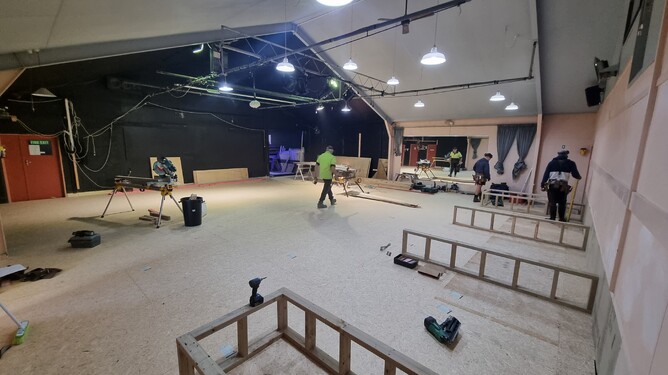 Things are moving fast now that the new floor is down. Already, work has started on the new tiered seating which will improve the theatre experience for our audiences, ensuring everyone has a good view of the stage. A clever design will allow the lower levels to be stored away when not in use, so a larger floor area can be used without us having to lug great heavy platforms out of the way.
