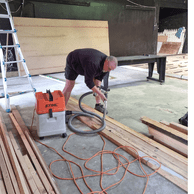 When we bought the building, the present kitchen was only a third of the size it is now, and there was a garage roller door to the outside world about where the door between the auditorium and kitchen is. There was also a potbelly stove in that vicinity, which we cranked up ...